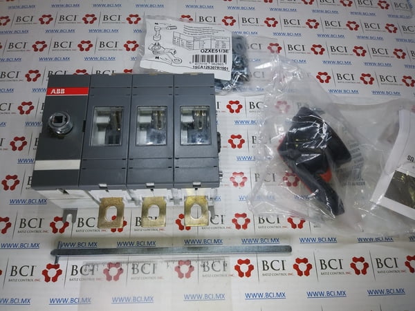 OT160EV03P ABB. KUORMANKYTKIN LASTBRYTARE SWITCH-DISCONNECT LASTSCHALTER Conector de 3 polos, operado en la parte frontal, montado en la base con manija y eje IP65 negro, kit de pernos de terminal incluido
